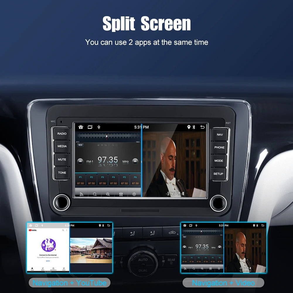 Con la Radio 2DIN Android 7” para VW (Passat, Golf MK5/MK6, Jetta, Polo, Touran) tendrás todo lo que necesitas en un solo dispositivo: